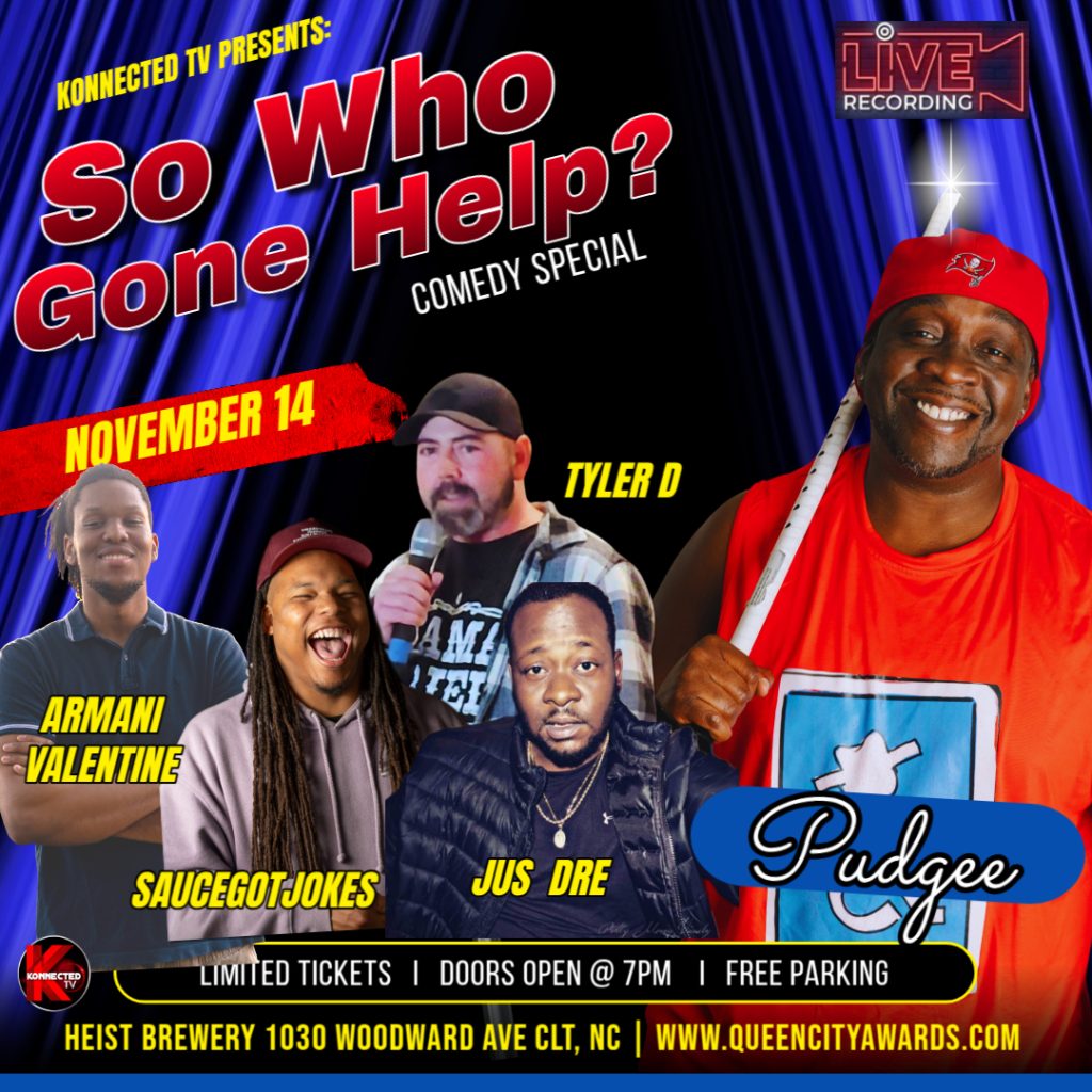 Get ready for a night full of nonstop laughter at the “So Who Gone Help?” Comedy Special featuring the hilarious Comedian Pudgee on Friday, November 14th at Heist Brewery (1030 Woodward Ave.)! Doors open at 7PM, and the fun doesn’t stop there—special guests SauceGotJokes, Tyler D, and Montee Rogers will also be hitting the stage, bringing their unique styles and energy to make this an unforgettable comedy experience.
